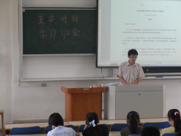 7月8日(周五)下午两点半,信院08级本科生6系、10系、23系、信安专业党支部,在3121教室组织了在校全体党员,认真学习了胡锦涛书记在庆祝中国共产党成立90周年大会上的重要讲话。