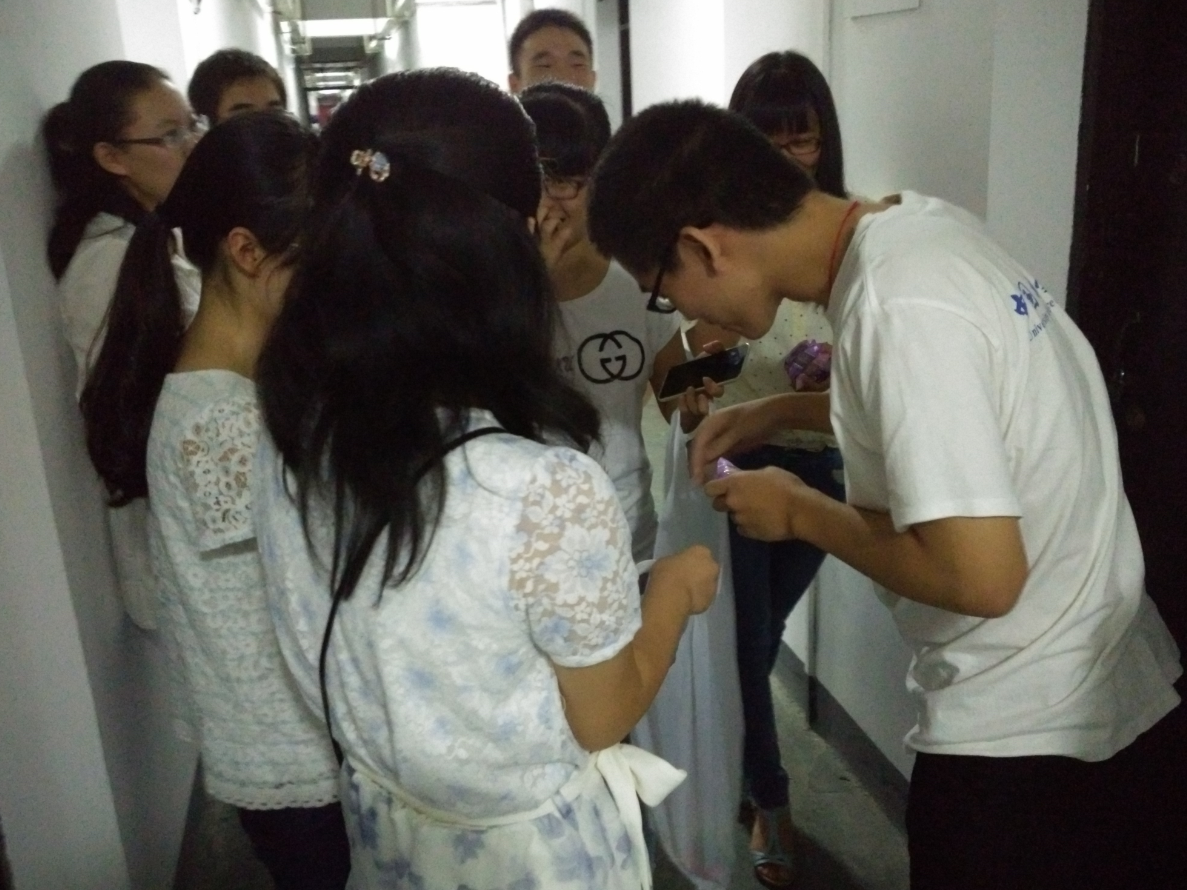 2015年9月27日,正值中秋佳节。是日也,天朗气清,惠风和畅。仰观皓月之圆,俯尝月饼之甜,信可乐也。这一天,13级2班团支部分别在西区三教、北门草地和学生宿舍举行了一系列活动,不仅让本班同学享受到节日的快乐,也让不少校园内同学驻足观看。