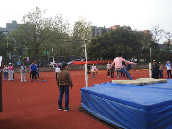 我们班运动员参加的第一个项目是女子跳高。虽然全班只有10名女生,但是她们积极参与到体育运动中,共有7人参加了这次运动会。唐新宇同学在跳高场地上做好准备,伴随着一段轻快的加速,敏捷的她在杆前找准了合适的起跳点,用力一跃,轻松过杆,取得了第六名的好成绩。