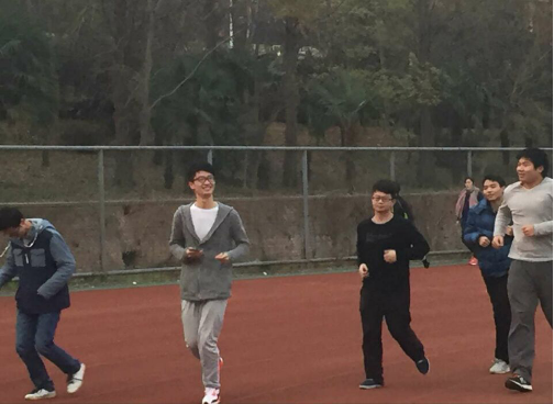 活动当天,虽是寒风凛冽,却并没有阻止同学们走向操场的步伐。此次虽是一项长跑活动,但大家也是十分自觉有序的排成两列纵队,在团支书魏晓东的带领下,大家顶着寒风,冲出了起跑线。