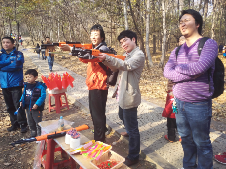 在下山途中,同学们意犹未尽,还在山路旁的小山上玩起了“实弹射击”。体验先烈们的壮志豪情。