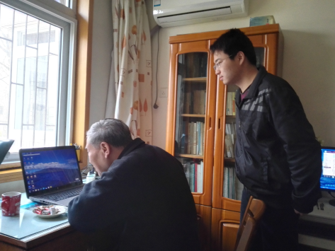 老干部家中电脑有问题,我们的同学耐心地为老干部检查、修复。