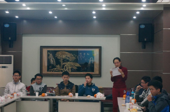等同学们基本到齐后,张璠老师道出了本次茶话会的主要内容:老师瞒着我们在家长群里发动家长们给自己的孩子写一封信,送上新年的祝福,并把信件带到了现场。为了增加趣味性,老师决定采用由自己来朗读信件、由同学们来猜测信件主人的形式,并设立抽奖环节,猜对者及信件主人均可参与抽奖。