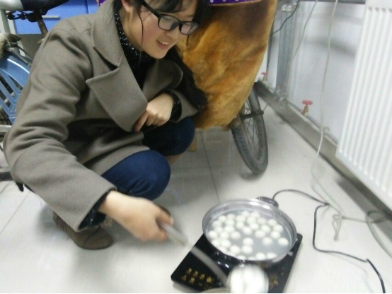 活动前,班主任从家中带来电磁炉、锅和勺子,并借用实验室的电和场地煮好了汤圆,班委们为同学们分发了水果和牙签。