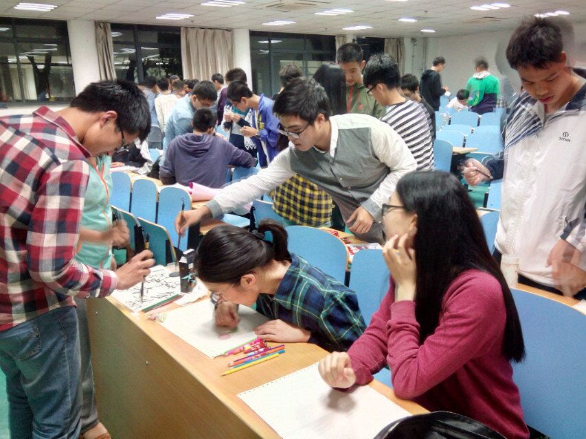 “爱就用手做出来”。活动的第二环节是让同学们动手制作代表对母亲心意的礼物。现场有王龙达同学教学制作滴胶,江再风同学教学书法,蒋舟帆、舒漫莉教学手绘,秦世杰教学折纸,王航同学教学捏橡皮泥。同学们热情洋溢,有的在认真准备献给妈妈的杰作,有的则图个欢乐,其实,自己的笑颜就是送给妈妈最好的礼物。