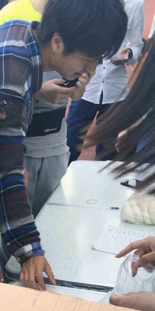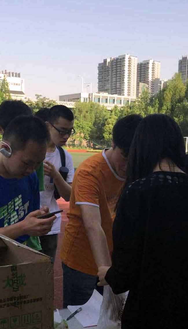 (工作人员在积极的向同学们宣传活动,同学们纷纷上前了解)