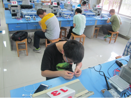 之后,负责人给每位参与者发放一个主板、闪存、电烙铁、由大家自己动手操作,虽然对于仪器的操作不太熟悉,但大家的热情高涨,不断地进行尝试,即使失败,也会拆下来重新安装,直到尽自己最大的力量。