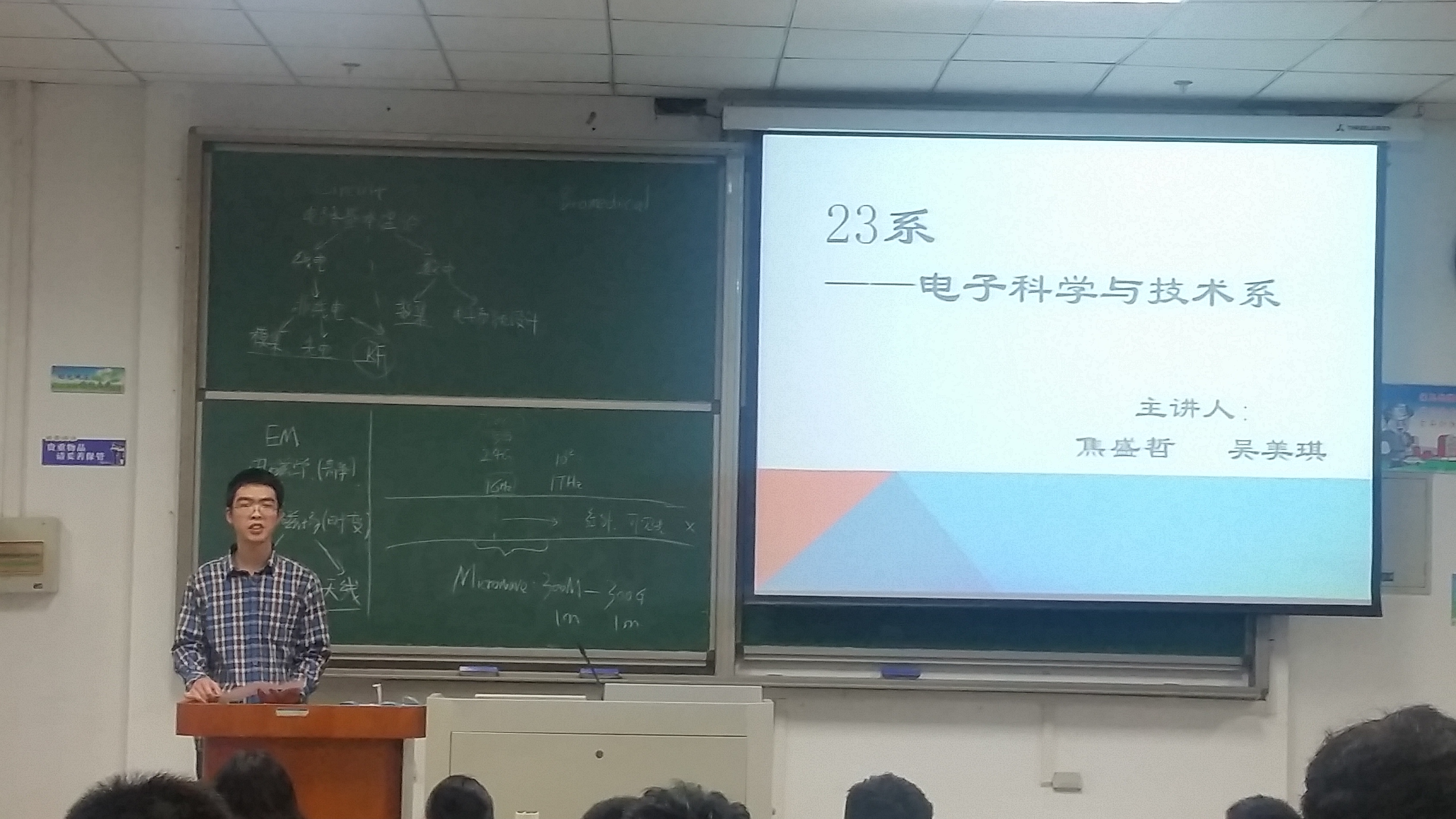 2016年4月16日晚七点,交流会在3C121正式开始。首先上台分享的是来自23系的郭奖得主焦盛哲师兄和吴美琪师姐。焦师兄重点介绍了23系所要学习的课程和各专业课程的异同,建议各位同学认真学好KY.COM开元体育(中国)科技公司的基础课程,为专业课的学习打好基础吴美琪学姐则介绍了23系的研究方向,让大家更好地了解未来的发展道路。