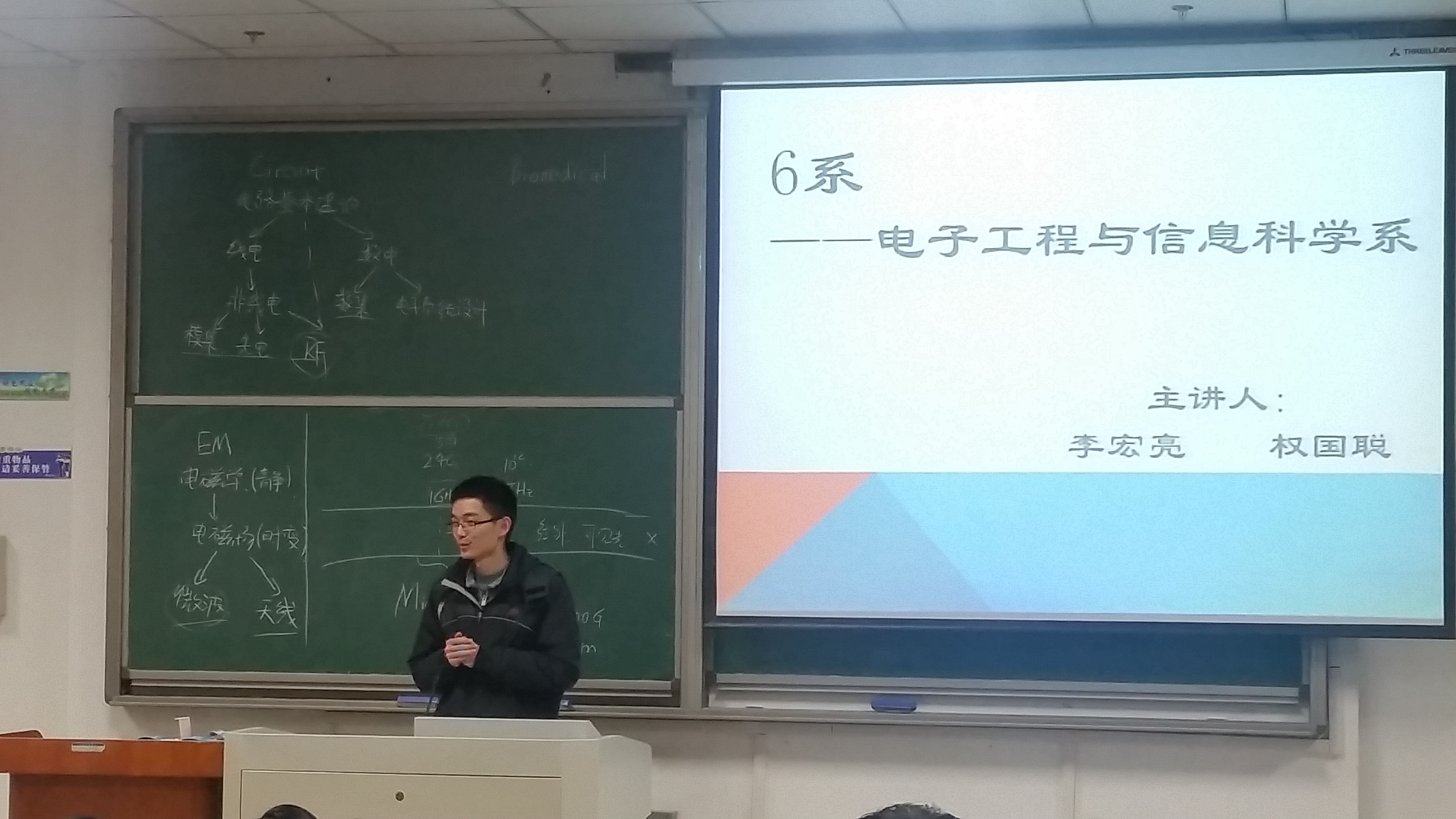 接下来是来自6系的两位师兄的介绍。李宏亮师兄以亲身经历告诉大家该如何正确选择适合自己的专业,并简述了6系各专业都在做哪些方向的研究;权国聪师兄则给出了在深造方面的建议,提醒大家根据自己对发展的需要来找到合适的专业。