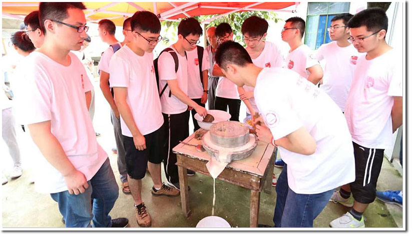 上午10时许,左右经过一个多小时的车程,团队到达马郢村,正赶上村长一家准备午饭,同学们自己动手磨豆浆,体验简单的农村日常生活。在新奇之余,感受到了浓厚的乡土人情。