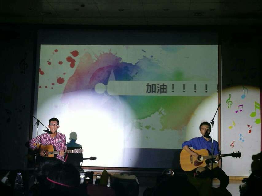 晚会最终在顾健鑫和徐文乐的吉他弹唱《那些花儿》中走向尾声。两名大一新生深情地演唱,吉他的乐声自然悠长。台下观众们跟随着乐曲联想,大家意犹未尽。