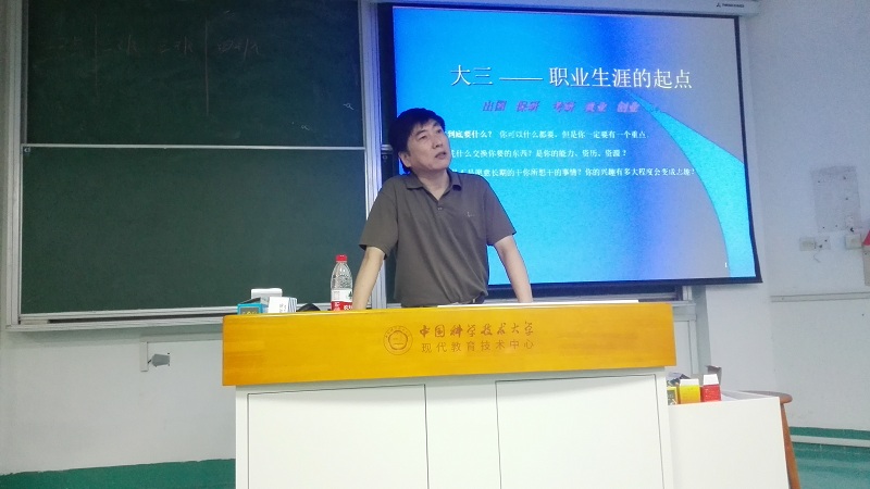 李老师别出心裁地以几个简单的问题作为开场白:你想要什么?你用什么交换你想要的东西?你是否愿意长期地干你所想干的事情?他带领着同学们思考这些问题,并一一地给出自己的看法,语重心长地告诫同学们:“可以什么都要,但是一定要有一个重点”。他同时辅以身边的例子,意味深长地教导同学们要清楚地认识自己的能力,选择最适合自己的道路。