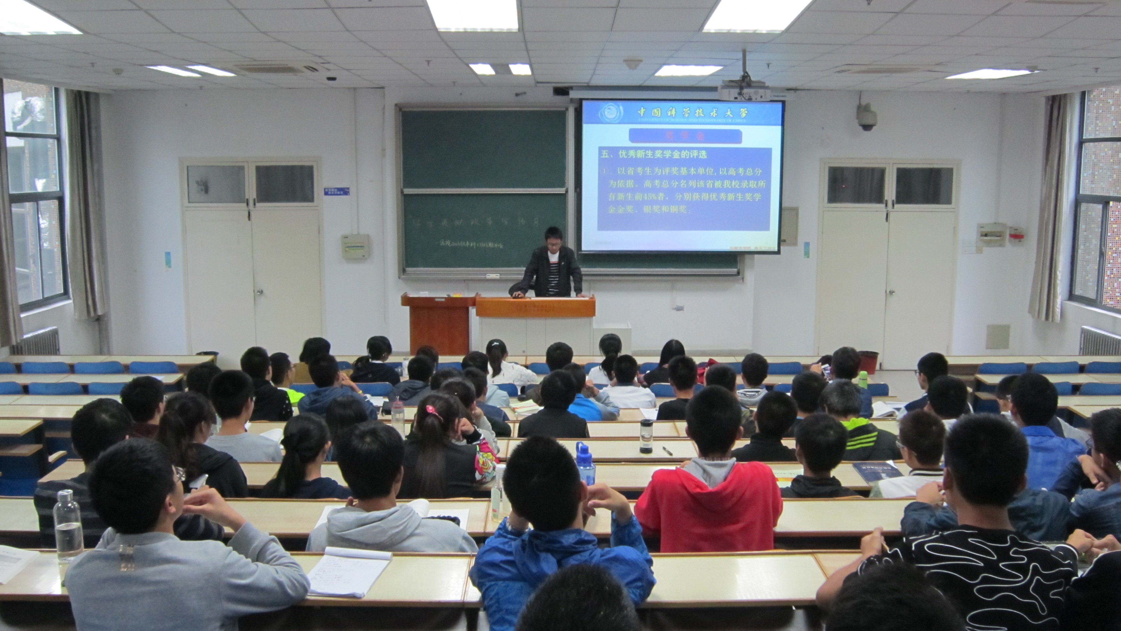 生活委员岳征宇同学详细为大家说明了各项学生资助政策,对新生奖学金、国家奖学金、以及郭沫若奖学金等一系列奖学金评选的要求、过程进行了介绍。评奖的学生不仅要在学业方面突出,更要在科研、社会活动等方面有所成绩,是对一个学生全面、公正的考核和鼓励。之后,岳征宇同学又介绍了助学金项目,讲解了国家助学金、国家励志奖学金、以及学校社团资助等资助项目是如何帮助同学解决经济上的困难的,并将自己的社团经历与大家分享,让大家更加了解助学金项目。