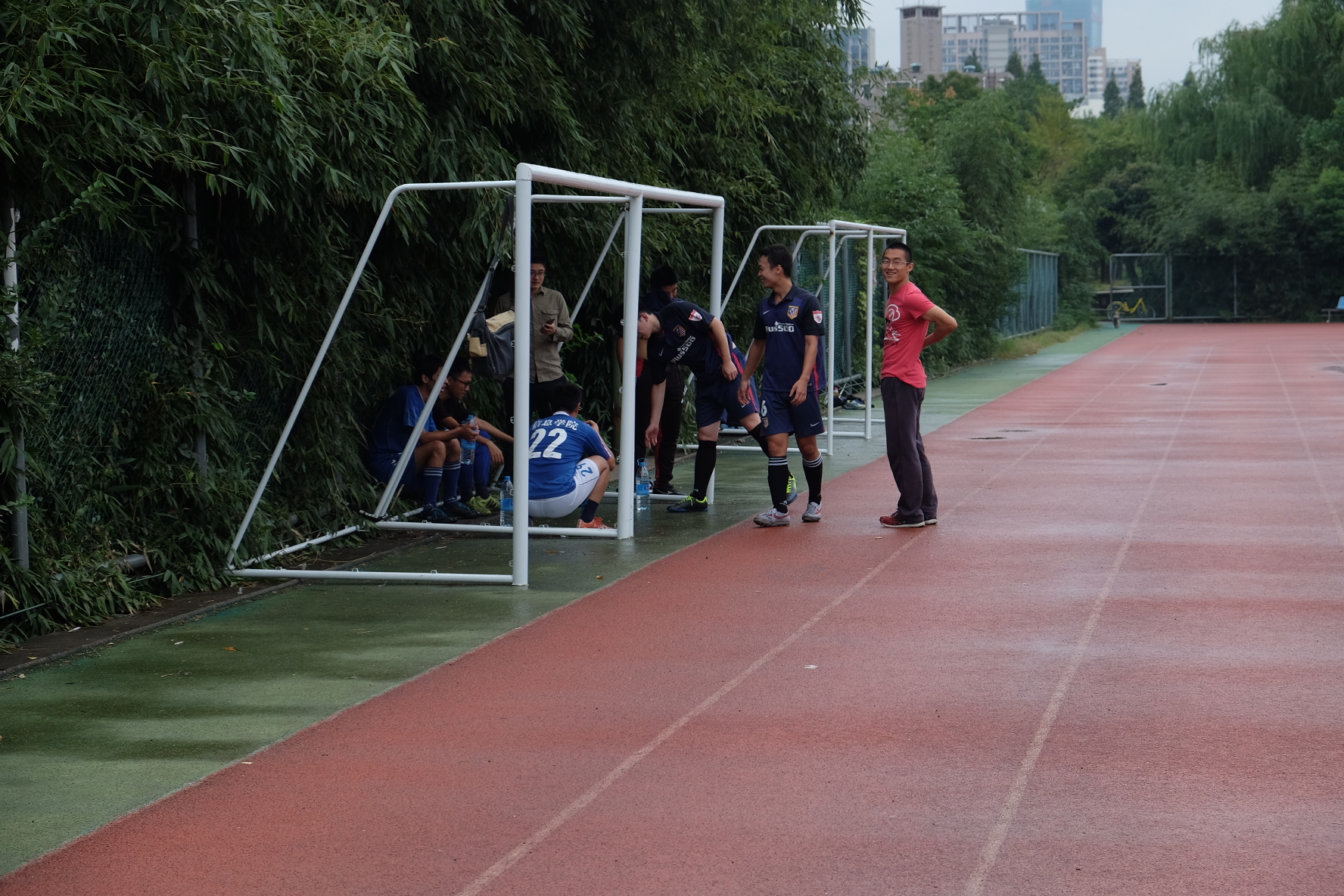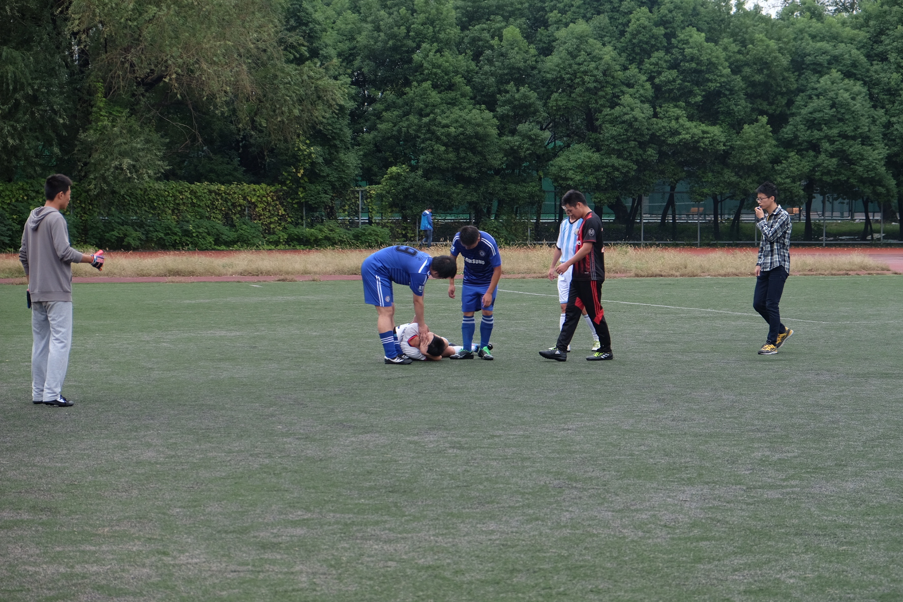 上半场比赛研二联队利用出色的个人能力,快速的传导球,在右路频繁创造出机会;而研一联队利用对方在后场的几次失误也创造出了很多机会,可惜未能把握住。中场休息时,研一联队面色凝重,紧锣密鼓地商量对策;而研二联队则神色放松,为下半场的比赛蓄力。