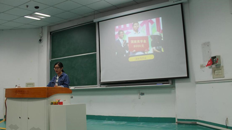 接下来,副班长喻林同学为我们介绍了学校的具体资助政策与各个资助项目。科大奖助学体系总共分为八个方面,分别是助学金、国家助学贷款、勤工助学、绿色通道、社会资助、学费减免、临时困难补助、生活援助计划。接下来喻林同学依次介绍了每一部分具体的种类、获得要求等。