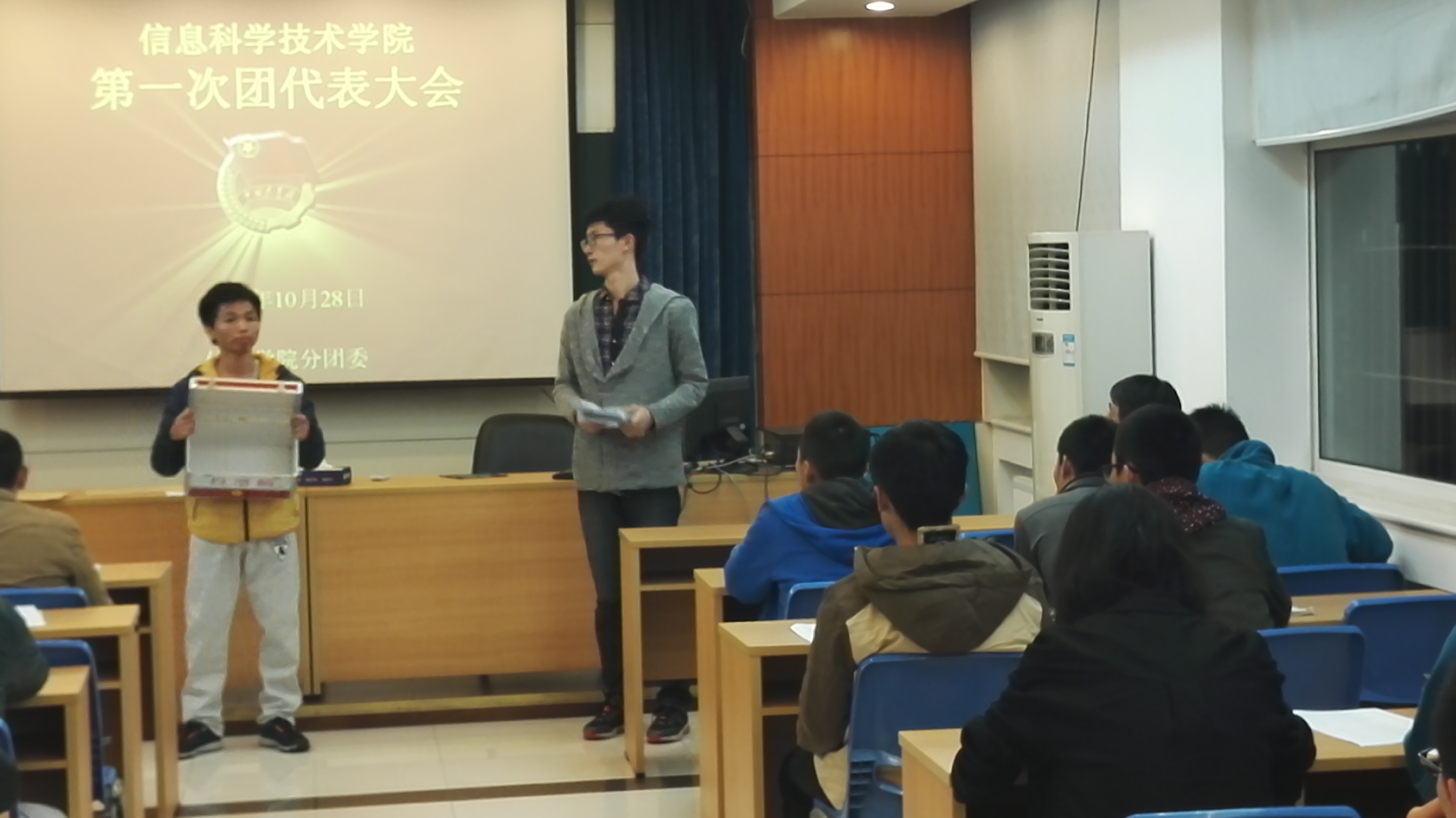 上面两项议程结束后,会议的选举工作正式开始。按照议程,会议将先从11位信息KY.COM开元体育(中国)科技公司团代会代表候选人中选出9位出席学校团代表大会的正式代表,然后从11位委员候选人中选出9位成为新一届院团委委员会的成员,最后由全体代表推荐校团委委员候选人。主持人张璠老师按照议程及选举办法草案(下称草案)要求,首先请大家阅读思考草案,并请大家提出疑议或建议,在全体代表同意草案后,张璠老师宣布草案正式成为本次团代会的选举办法。随后,按照议程和选举办法要求,张璠老师提名身为代表但并非候选人的魏晓东和黄承磊同学分别担任计票人和监票人,并请全体代表决定通过。在全体代表同意两位同学负责计票监票后,张老师请监票人计票人就位,选举正式开始。