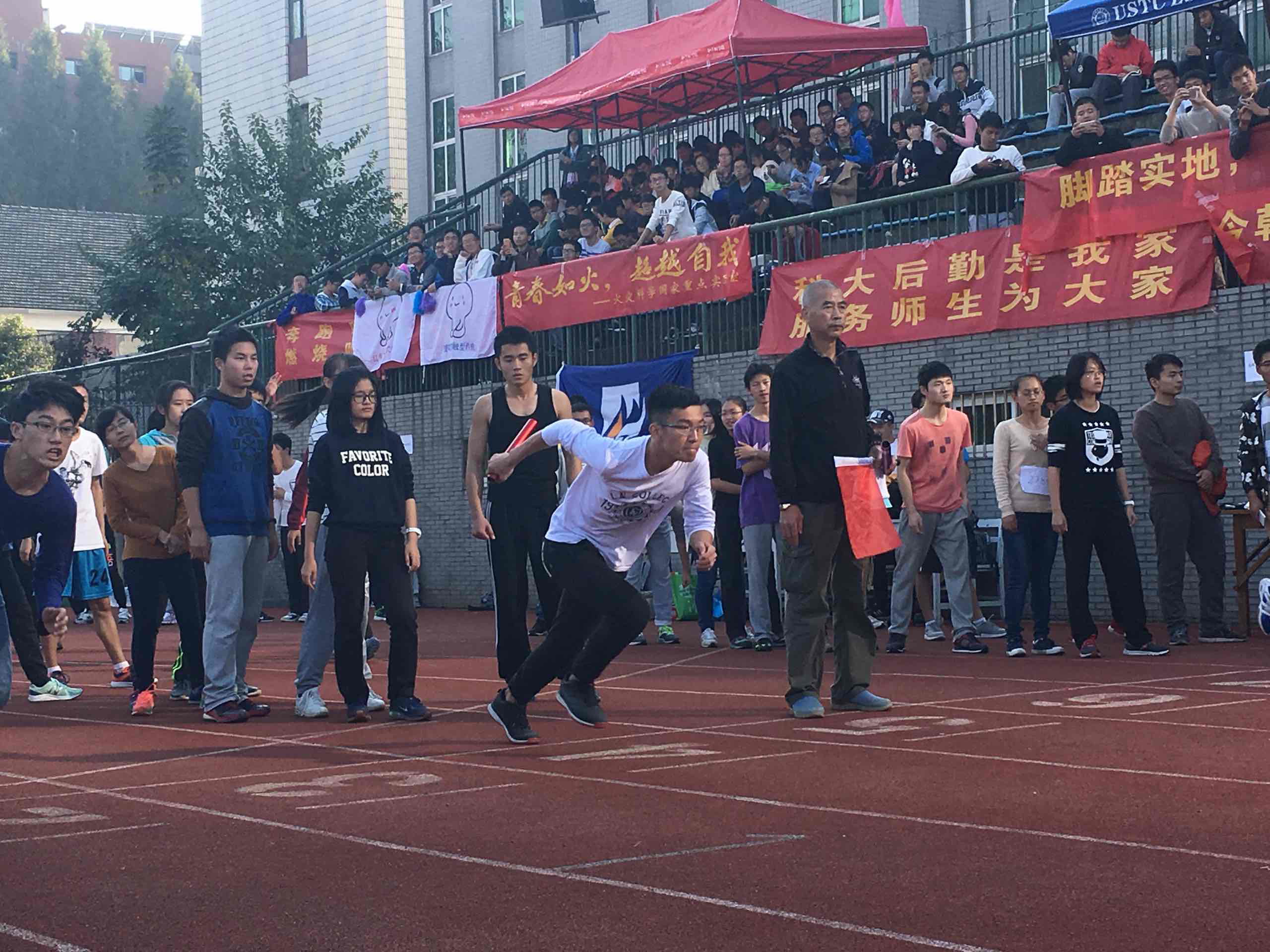 阳光熨暖了运动场的氛围,观众们的热情也逐渐地升温,经过了一个上午的预热,运动会已进行到了一个高潮。运动选手们尽情挥洒着汗水,观众振臂高呼,为他们心中的冠军加油。11月5日下午的比赛以径赛为主,短跑运动员们在起跑线处蓄势待发,如同满弦的利箭。而长跑运动员细致地调整呼吸,充分挖掘自己的每一分潜力,不疾不徐,脚踏实地。每个人都积极认真地对待比赛,胜不骄,败不馁,没人为领先而松懈,也不为暂时落后而放弃。