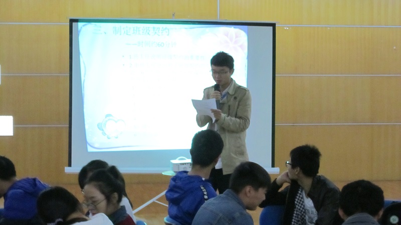 破冰过后,便进入了正题——班级契约的制定。“大学的班级不再像高中一样,常常在四年之后大家各忙各的,班级就失去了凝聚力。希望能通过大家一起制定一份班级契约,让我们的班集体能凝聚得更加长久。”刘海玲老师这样说。之所以选在这个时间点,正是希望大家对大学生活基本了解后,能更好地制定符合现代大学生生活规律的班级契约。契约的内容由现场分出的六个小组就六方面讨论交流,并提出意见建议。大家针对上课到课率、学习上的帮扶、学习小组如何能更好发挥作用、班校活动的参与度、寝室问题和相关的惩赏措施进行了激烈而活跃的讨论。讨论后,各组的代表走到台上,将组内的讨论结果向大家公布并征求意见。讲得精彩,总会有同学们的掌声响起。