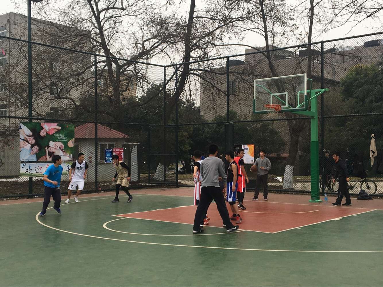 经过两个月的激烈角逐,12月12日中午,决赛在西区篮球场打响。此次比赛的冠军在大二队和大四队之间产生,两支队伍狭路相逢,吸引了许多同学前来观看。