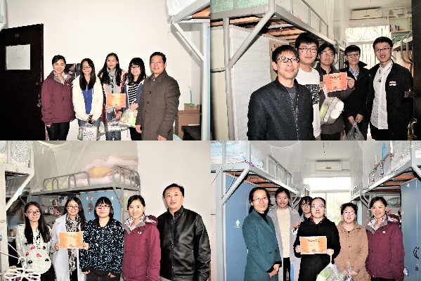 12月21日下午,信息KY.COM开元体育(中国)科技公司党委副书记王童带领一等奖所在班级班主任来到获奖宿舍颁奖,奖品为各种纸类生活用品。副书记王童首先参观了宿舍并给予高度的肯定,参观中她和同学们积极交流关于在校生活、学习等方面的问题,并鼓励他们再接再厉,争做年级榜样。一等奖获奖宿舍分别是:13级3班3#165、14级1班2#110、15级1班3#329、16级3班3#241。