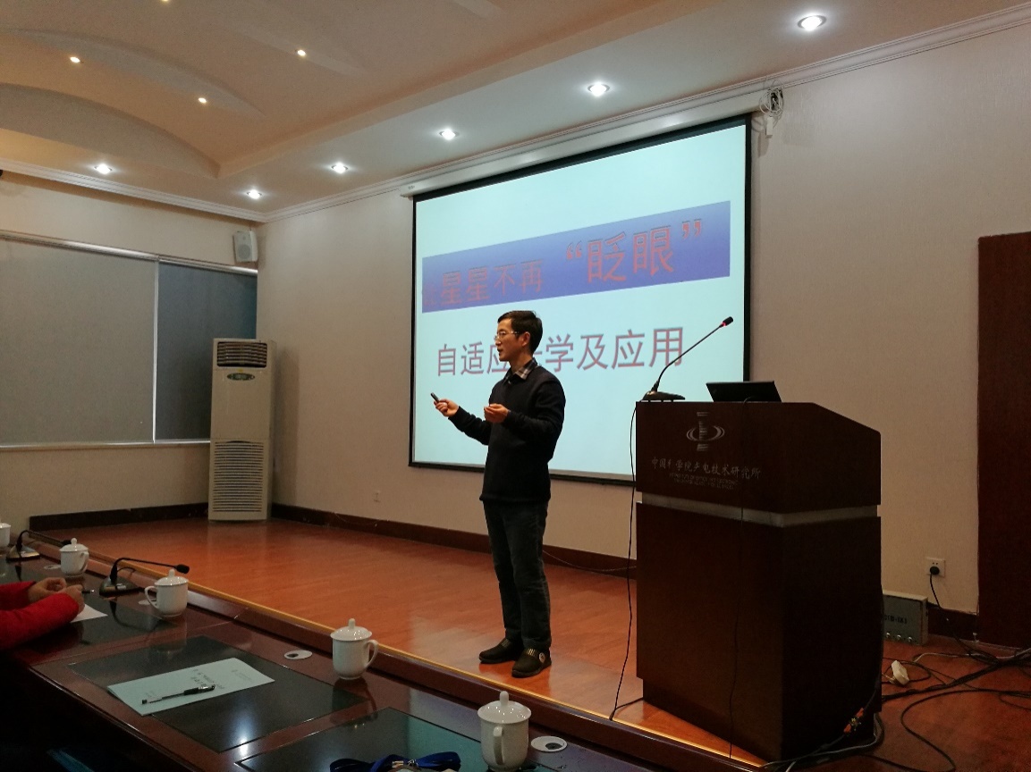 在学术交流阶段,光电所研究生部向银辉老师作了题为《让星星不再“眨眼”——自适应光学及应用》的趣味科普报告。他从伽利略望远镜谈起,以“星星眨眼”作比喻,引出了自适应光学要解决的问题,他重点介绍了自适应光学的基本原理以及众多的应用领域,说到动情处,他自豪地说道:“同学们,以前我们是模仿欧美的技术,现在我们不仅仅是跟着人家走,我们要跑在他们前面!”大家也纷纷激动地鼓起了掌;杨平研究员为营员们作了固体激光领域的学术报告。他介绍了几位奋斗在一线的杰出青年科研工作者的事迹,鼓励同学们在学习和科研工作中要自信、有魄力,敢为人先。随后,他介绍了国内外在固体激光领域的发展动态和挑战,并与同学们分享了自己指导研究生的心路历程;针对当下火热的量子通信领域,黄永梅研究员带来了《空间量子激光通信捕获跟瞄望远镜技术》报告。她首先回顾了光电所与中科大在量子通信领域的密切合作,简要介绍了光电所在世界首颗量子科学实验卫星“墨子号”项目中的工作,重点给同学们普及了激光通信捕获跟瞄望远镜发展动态和工作原理等。