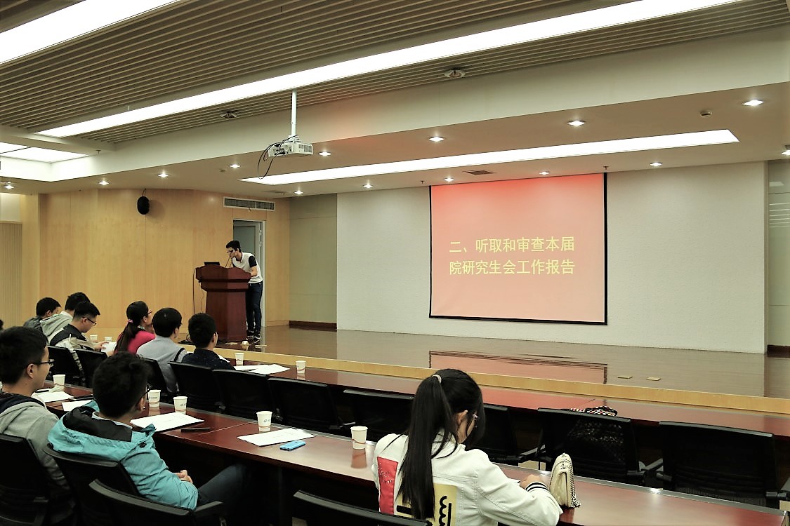4月13日晚上19:00,大会在西区科技楼2楼会议厅正式召开。在这次大会上,我们听取和审查了本届院研究生会工作报告,选举产生了出席校研究生代表大会的代表和我院研究生会新一届主席团,推荐校研究生会委员会委员候选人并从我院的校级代表中推荐常任代表,以确保我校第六次研究生代表大会顺利召开。