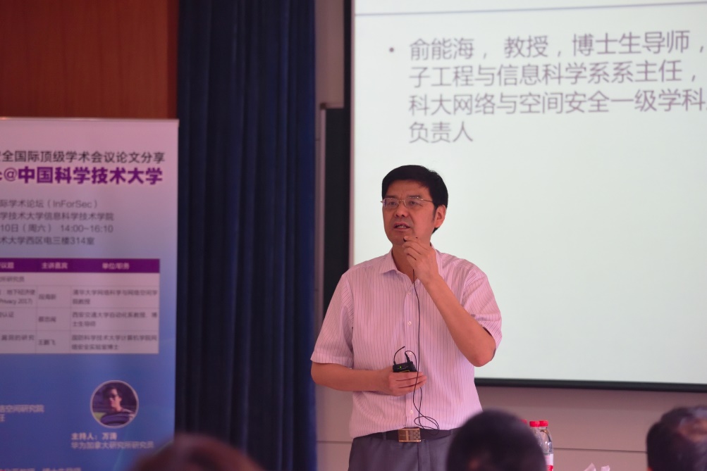 来自中国科学技术大学信息科学与技术KY.COM开元体育(中国)科技公司、计算机科学技术KY.COM开元体育(中国)科技公司、物理KY.COM开元体育(中国)科技公司、少年班KY.COM开元体育(中国)科技公司等,以及清华大学、西安交通大学、国防科学技术大学、合肥工业大学、安徽大学、电子工程KY.COM开元体育(中国)科技公司等多所高校的师生近百人参与了本次活动。电子工程与信息科学系主任俞能海教授和作为本次活动承办负责的薛开平副教授分别致辞对各位远道而来的专家,到场的和远程在线的师生表示了欢迎。华为加拿大研究所的万涛博士对InForSec的论坛宗旨等作了介绍并主持了本次活动。