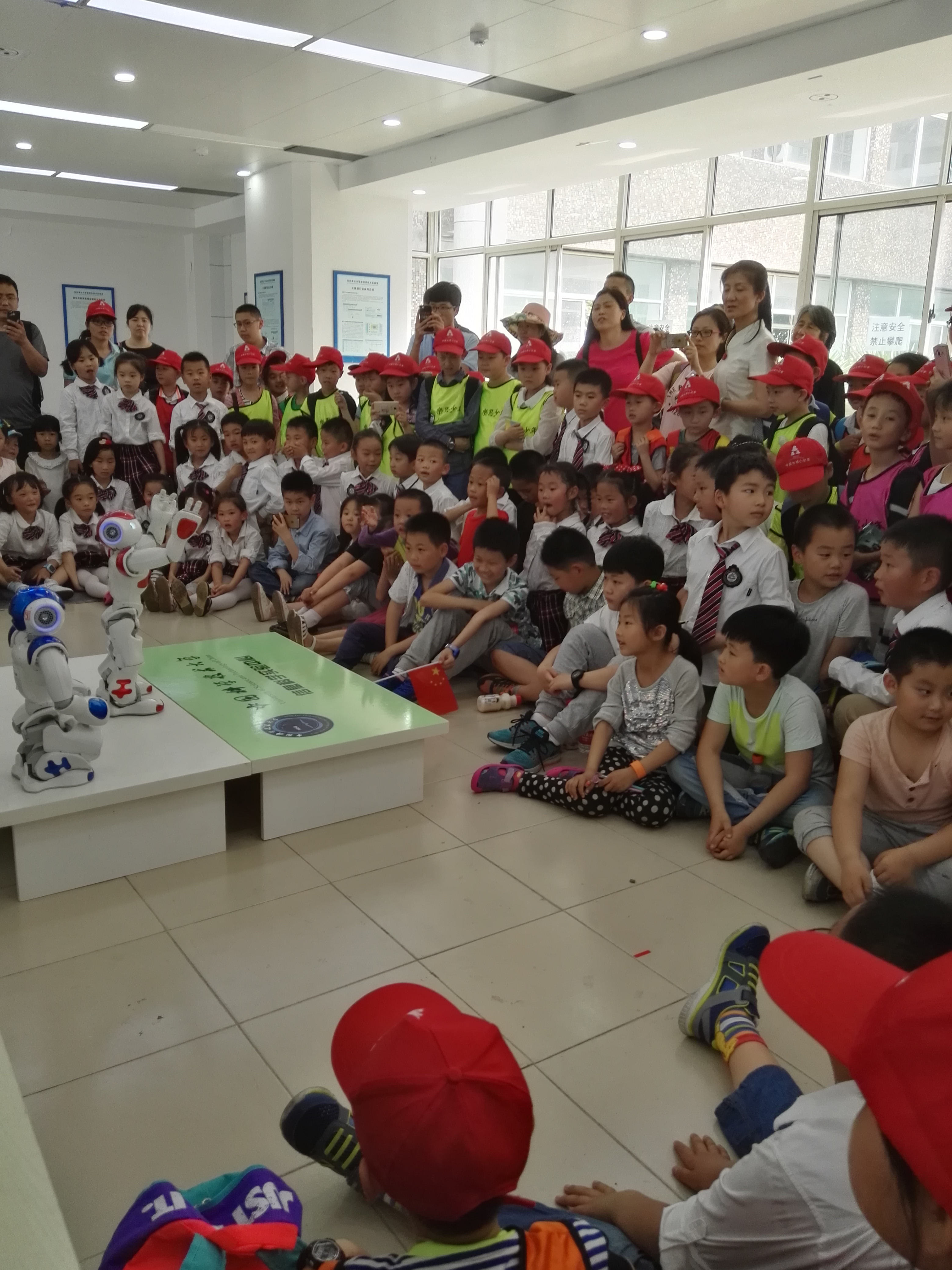 机器人表演吸引了大量参观者,信息科普点外面排起了长龙,表演场地四周围满了热情的观众。仿人智能机器人表演了多种项目:流行歌曲、劲爆舞蹈、西游记故事等节目,特别受到小朋友们的喜欢,精彩的表演赢得了现场阵阵欢呼声和掌声。