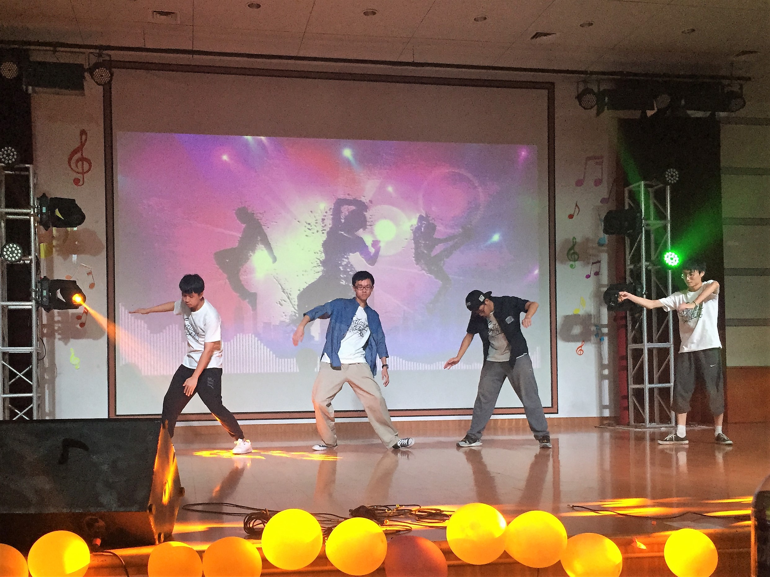 七时许,晚会正式拉开大幕。街舞社的表演当先出场,令人眼前一亮。三组不同的舞者,三种各异的舞姿,炫目的灯光配合精湛的舞技,展现着新时代的气息。与之相对的是受邀的安农大同学为我们带来的武术表演。一男一女,一拳一棒,以“双峰”为喻,同样展现出传统武术的朝气与活力。