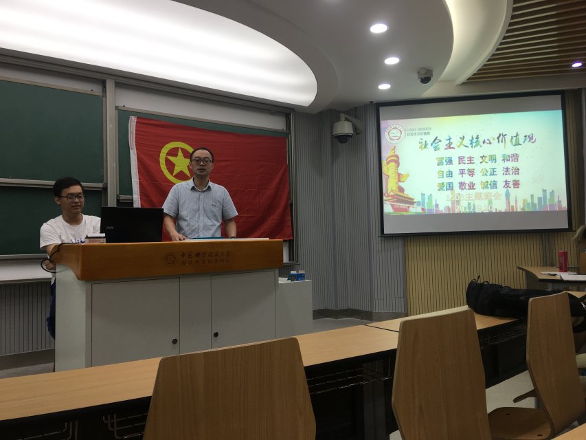 在班会的最后,班主任周燚老师走上讲台,向我们分享了自己对于社会主义核心价值观的理解,并结合自身经历向我们讲解了该如何在实际行动中用核心价值观规范自身行为。在之后的讨论中,周老师详细地解答了同学们有关方面的困惑。