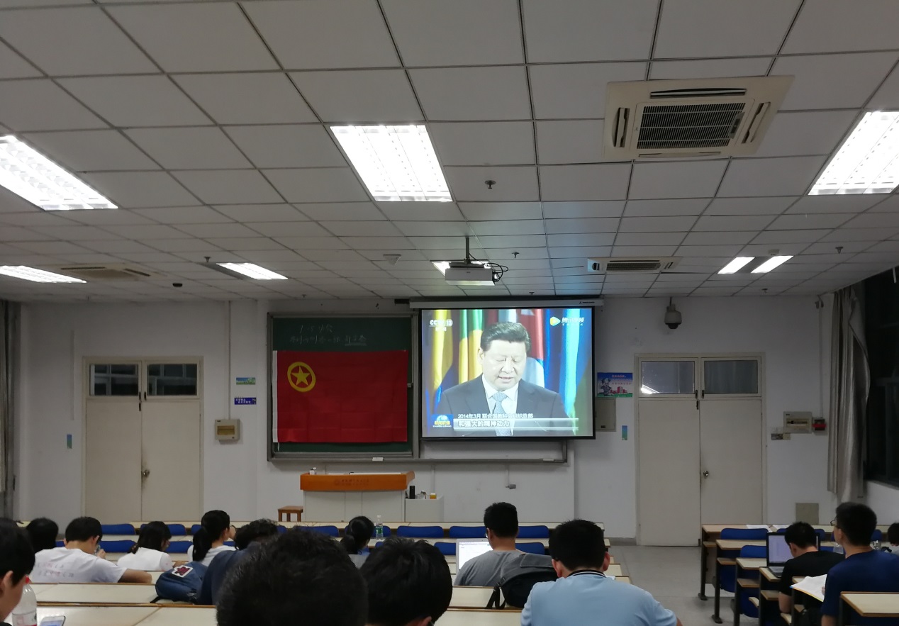 班会开始,班长高楠同学向同学们简要概述了文化自信的主要内涵及其对于国家、民族发展的重要性。为了加深学习成效,班长为同学们播放了新闻联播《伟大的改革,非凡的历程》系列栏目中关于文化自信方面的片段。