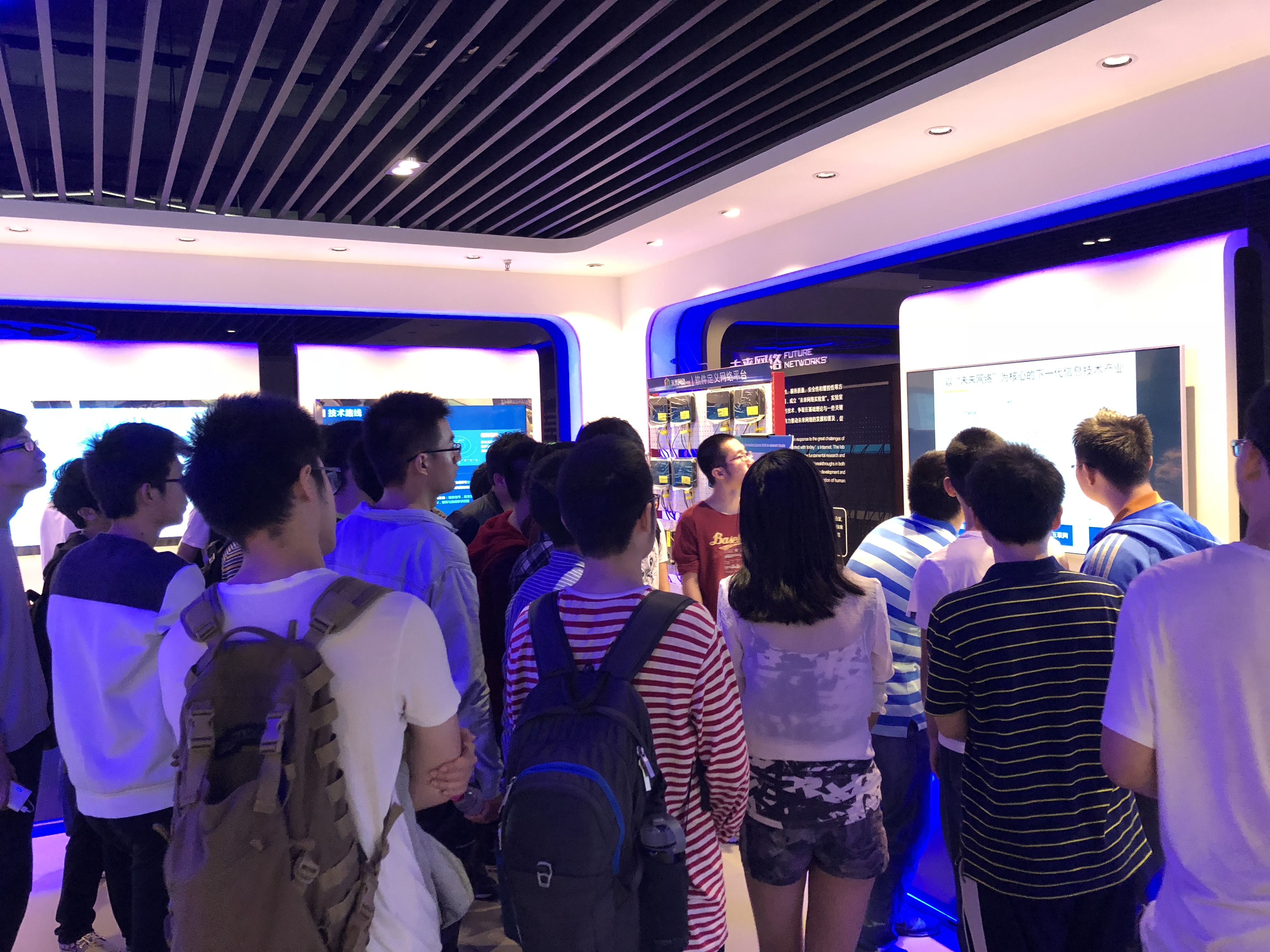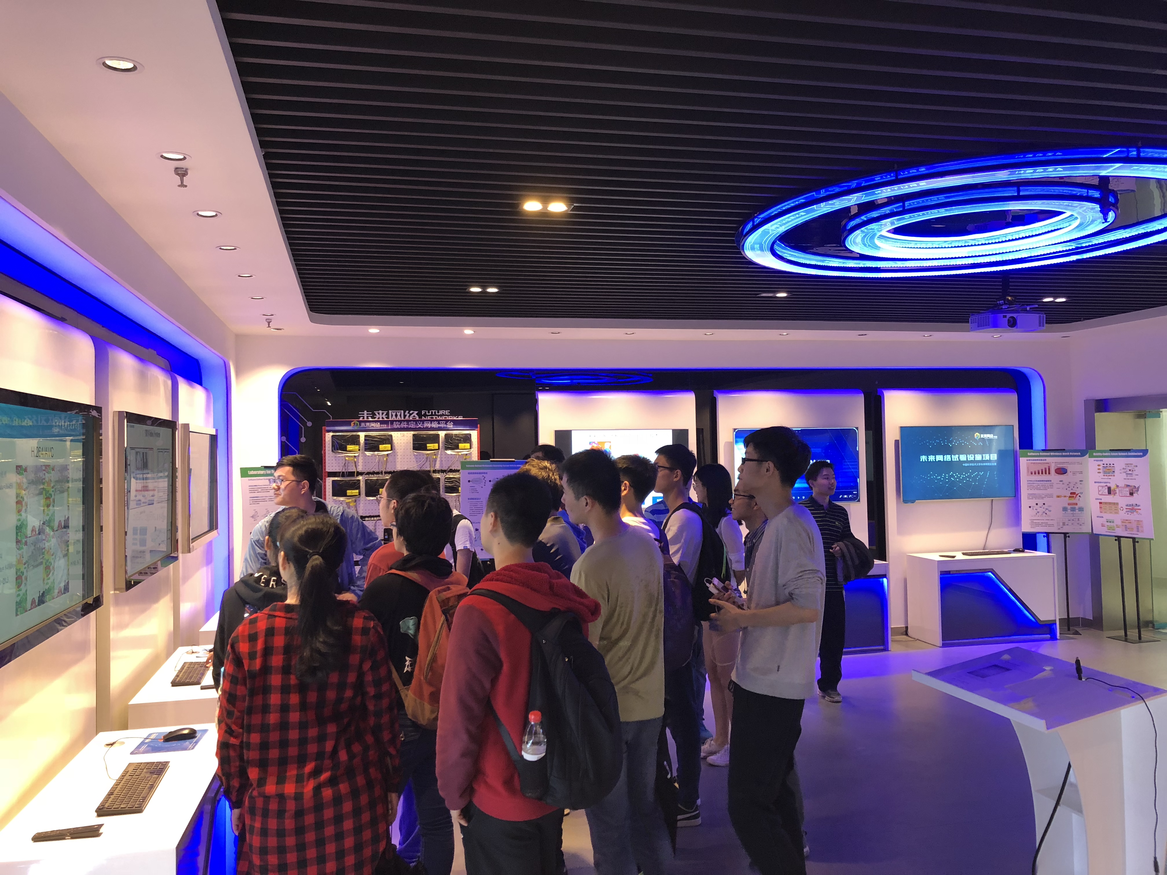 9:30参观正式开始,同学们来到科技实验西楼参加由未来网络实验室、多媒体计算与通信 教育部-微软重点实验室、中国科KY.COM开元体育(中国)科技公司空间信息处理与应用系统技术重点实验室和类脑智能技术及应用国家工程实验室等四个实验室联合举办的参观。