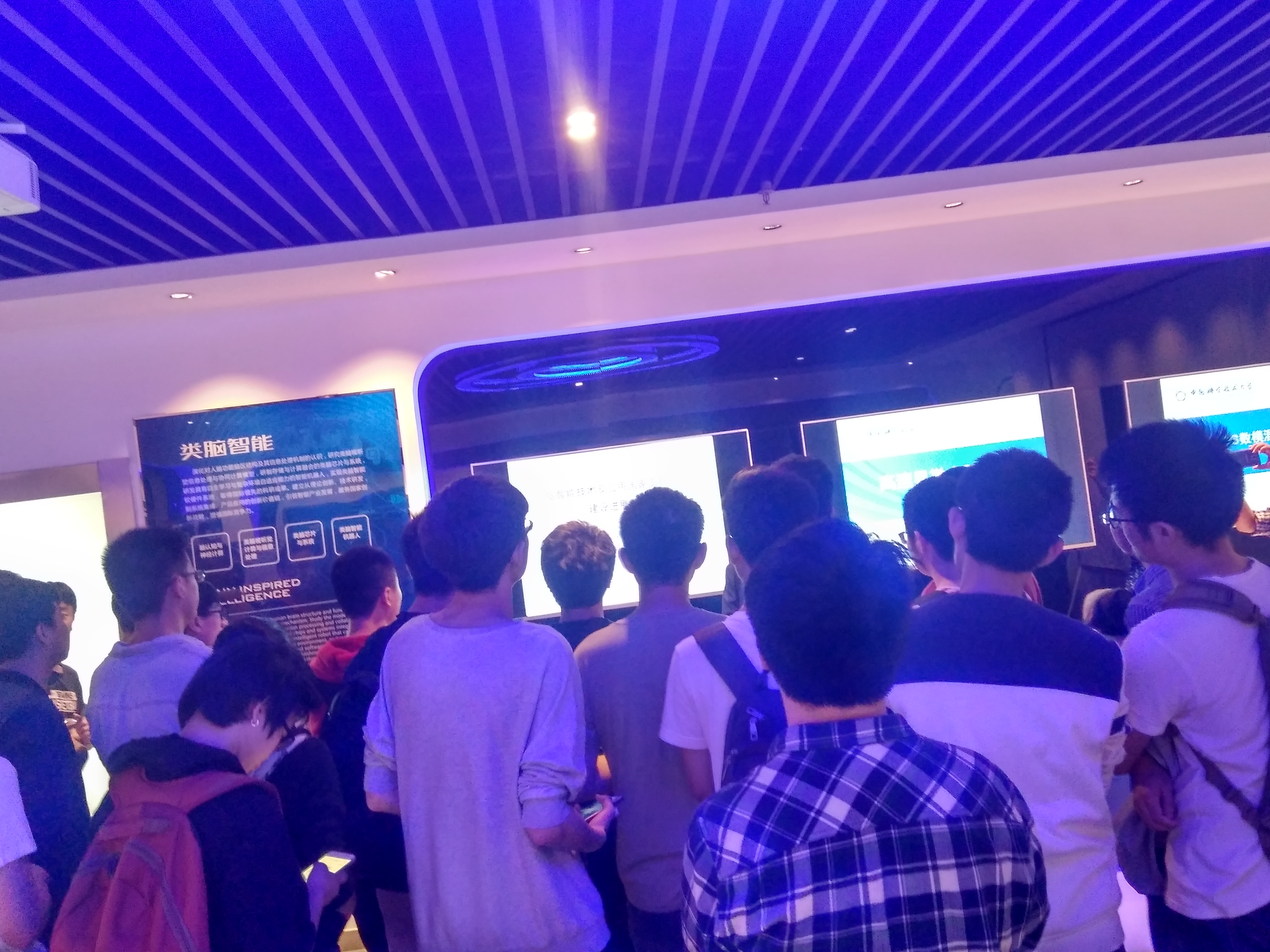 9:30参观正式开始,同学们来到科技实验西楼参加由未来网络实验室、多媒体计算与通信 教育部-微软重点实验室、中国科KY.COM开元体育(中国)科技公司空间信息处理与应用系统技术重点实验室和类脑智能技术及应用国家工程实验室等四个实验室联合举办的参观。