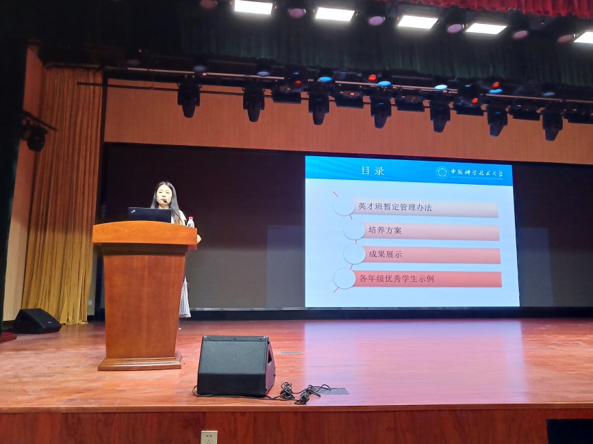 科技信息英才班陈雪锦老师向各位新生介绍了信息英才班的选拔方法,教学要求以及培养方式。