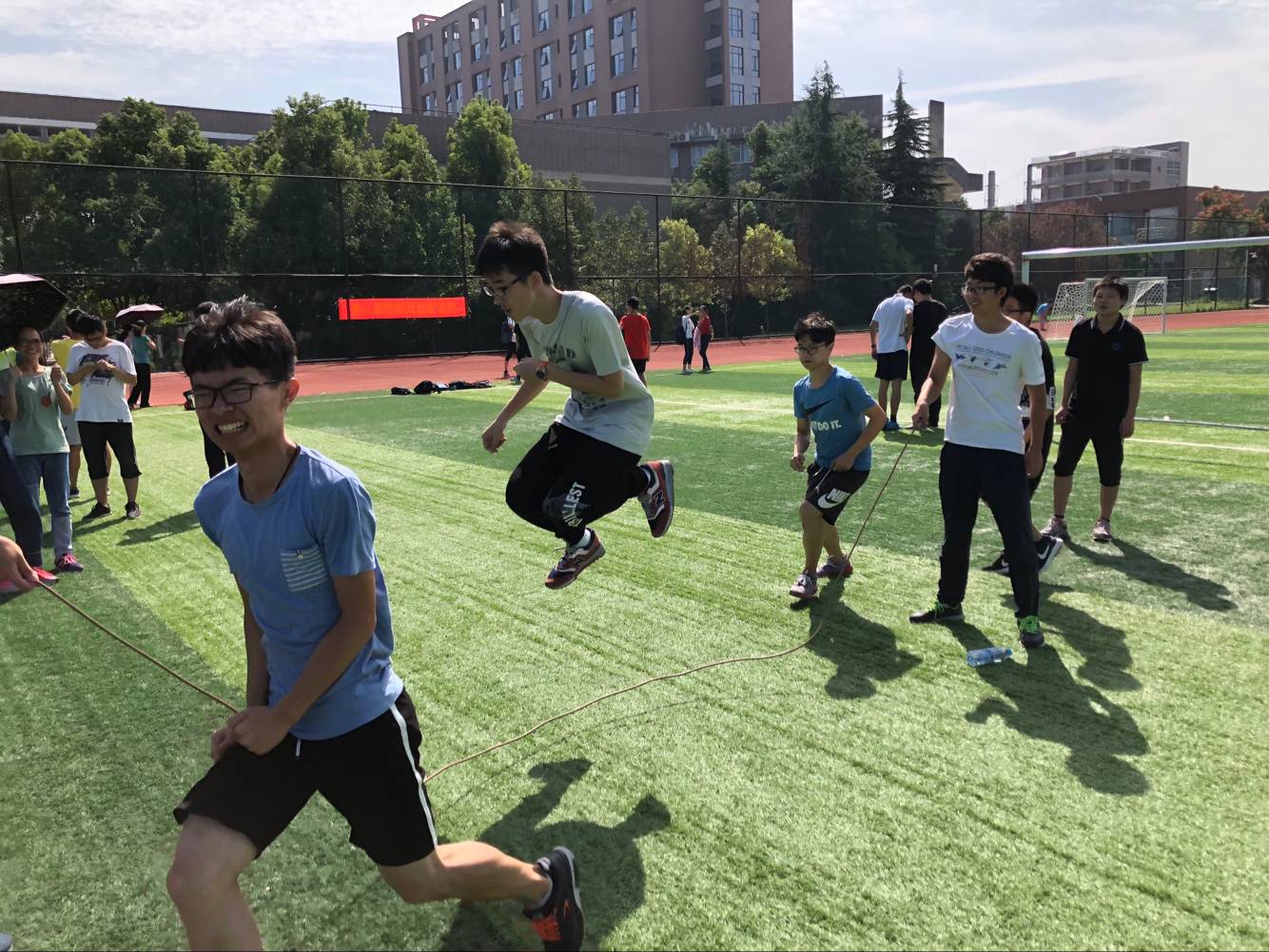 多足跑的结束则为此次班级联动赛画上了完美的句点。腿上的绳是束缚更是联系,联结起火热的心。一个团队能有多合拍,又能走多快,运动员们已给出答案。
