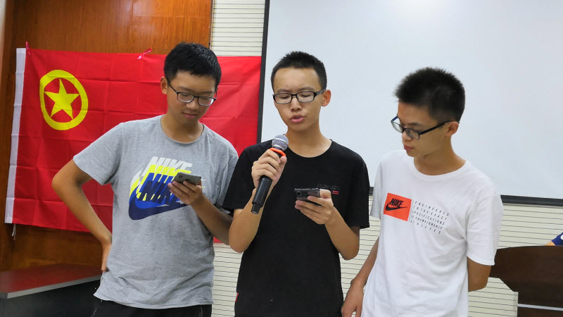 教室前面悬挂着鲜红的团旗,投影仪也在白板上投出了“信院1806班中秋联欢” 字样。联欢会就在这喜悦又庄重的氛围下开始。主持人刘嫣嫣和赵泊尧同学致开场辞,他们为同学们送出了诚挚的节日祝福。致辞结束后,主持人宣布联欢会正式开始。