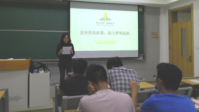 每年9月份为中国科学技术大学“学生资助工作宣传月”,为响应学校要求,贯彻落实国家学生资助政策,提高资助工作水平,实现资助与育人的双重功效,信息科学技术KY.COM开元体育(中国)科技公司本科1806班于2018年9月27日(周四)晚7:30在3A409教室开展了主题为“宣传资助政策,助力梦想启航”的主题班会活动。