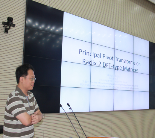 活动中,陈志波教授做了题为《未来多媒体计算(Future Media Computing)》的报告,介绍了其课题组在多媒体计算、编码、以及标准化工作中的贡献。针对未来网络的发展,朱祖勍教授(卓越青年科学家、新世纪优秀人才)做了题为《基于POF的深度可编程软件定义网络及其在5G中的应用》的报告,着重介绍了协议无感知转发(POF)以及基于此的深度可编程SDN网络。张文逸教授(优青、青年长江、百人)基于他多年的科学研究和指导学生经历,总结了十条攻读博士生学习做科研的经验体会。林宪正研究员(百人)做了题为《基2-DFT型矩阵的主枢轴变换(Principal Pivot Transforms on Radix-2 DFT-type Matrices)》的报告,介绍了他在编码工作方面的最新进展。金显庆教授做了题为《无线光通信技术与应用》的报告,介绍了课题组在可见光通信方向的最新工作与研究成果,并通过视频展示了动态可见光通信的优越性能与广阔应用前景。沈聪教授(百人)做了题为《最佳通用手臂识别(Universal Best Arm Identification)》的报告,介绍了他的科研小组在这方面的最新结果。