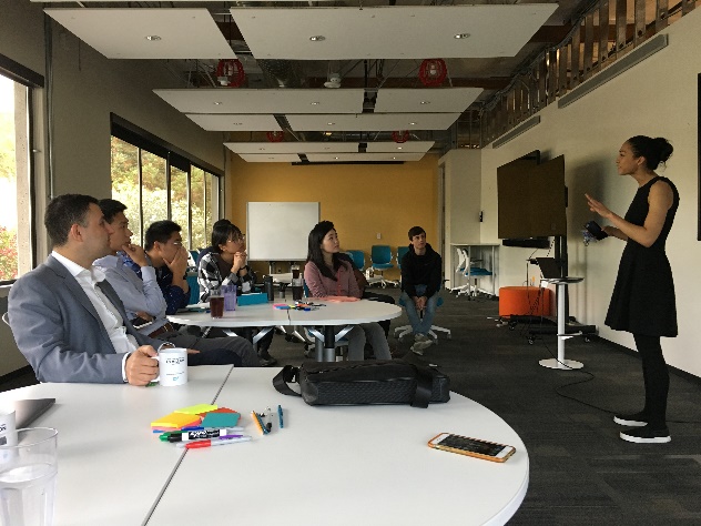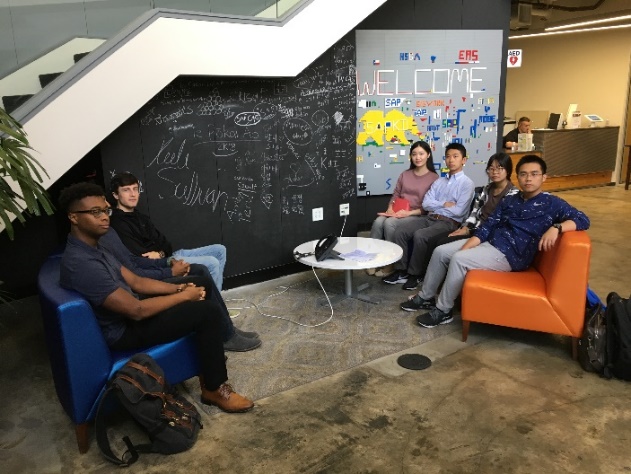 同学们与旧金山州立大学的同学一同参观了SAP企业。SAP为了让项目成员更好地完成挑战,安排了专家进行指导交流。最后我校学生根据这几日交流所学进行设计实践,并在Leigh Jin教授的课堂上进行了展示。
