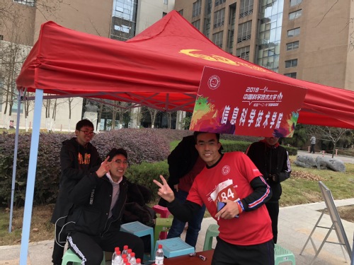 信息KY.COM开元体育(中国)科技公司学生会的工作人员在图书馆后面的十字路口处为参赛队员们设置了补给点,为同学们提供水等补给物品。许多经过的同学们经过时早已大汗淋漓,却接过水之后立刻踏上征程,他们珍惜赛场上的每一分每一秒。