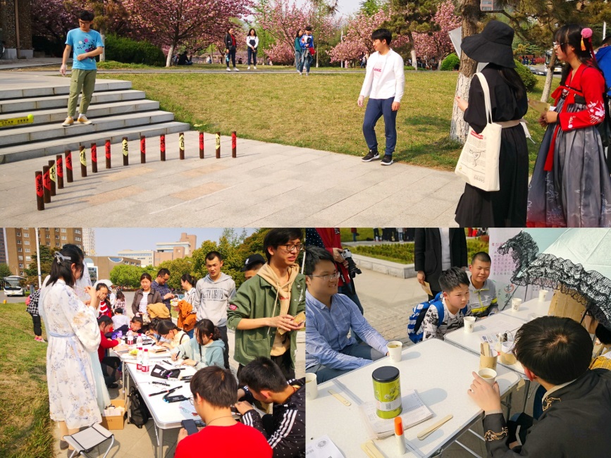 正值清明时节,校园内有许多慕名而来的游客。他们从四面八方来到科大,正所谓“前者呼,后者应,伛偻提携,往来而不绝”,他们在赏花之时也与科大学子一同参加各个摊位的活动。樱花盛放,花香袭人,现场的气氛也是欢快热烈。