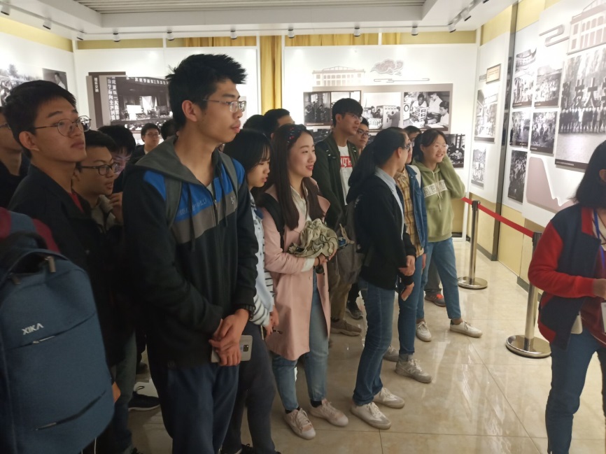 中国科学技术大学校史馆以照片及文物的形式,记录了自1958年建校至今的学校历史变迁及在此期间培养出的优秀学生和他们的事迹。校史馆开放区域为一楼和二楼,既定的参观顺序大致以时间顺序为主。参观中,同学们一边观察,一边聆听导游的讲解,在获得允许的情况下,不时用自己的手机记录下自己的所见所闻。整个参观过程持续大约四十分钟,最后大家在校史馆门口合照,本次活动顺利结束。
