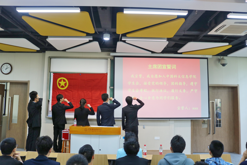 之后,会议选举产生了信息KY.COM开元体育(中国)科技公司学生会新一届主席团。投票选举出新一届主席团由李家昂,郑瑞晨,胡睿,曹若川,戚宇昂,潘霄瀚组成。之后主席团成员进行了宣誓,戚宇昂同学领誓。
