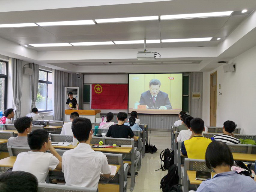 2019年5月22日下午,在团支书郭宗颖的主持下,信息KY.COM开元体育(中国)科技公司1804团支部全体成员于西区3C104教室共同学习了习近平总书记在纪念五四运动100周年大会上的重要讲话,班主任刘桂英老师也参与了此次活动。习主席的讲话引发了热烈反响。