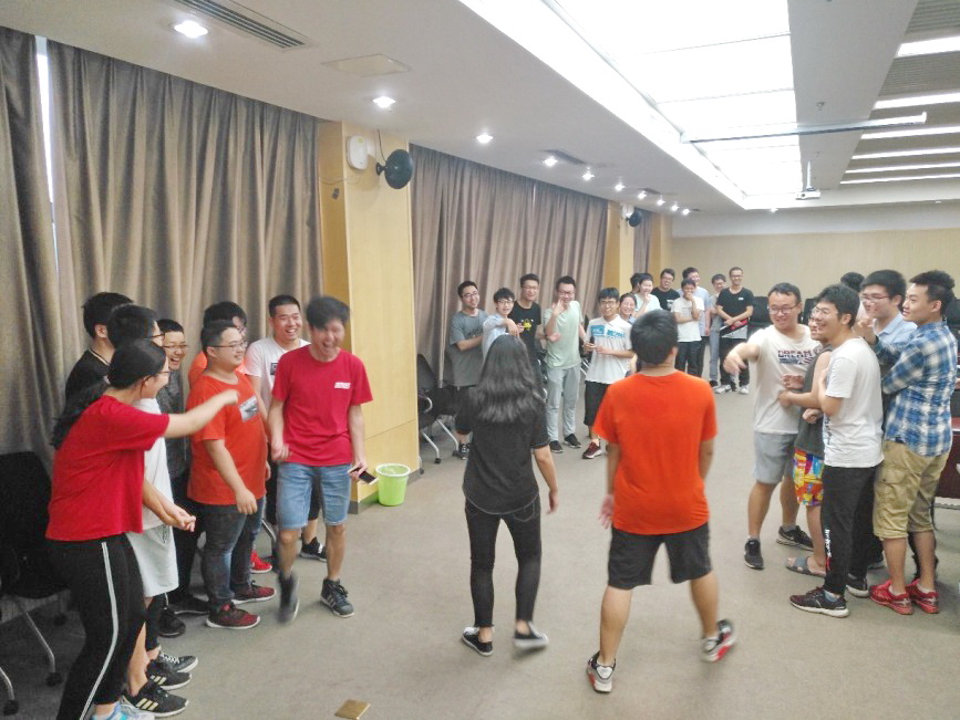 活动首先从暖场游戏“找零钱”开始。所有同学围成一个圈,主持人石文焘站在中央,当主持人喊出钱数,同学们需根据钱数来抱团,最后未能抱团的同学需要接受惩罚,大象鼻子绕五圈。当看到接受惩罚完的同学晕头转向站不稳的情景,气氛一下子活跃起来,大家开心又紧张,想看到别人接受惩罚,又怕未成功抱团的是自己。现场气氛迎来了一次小高潮。