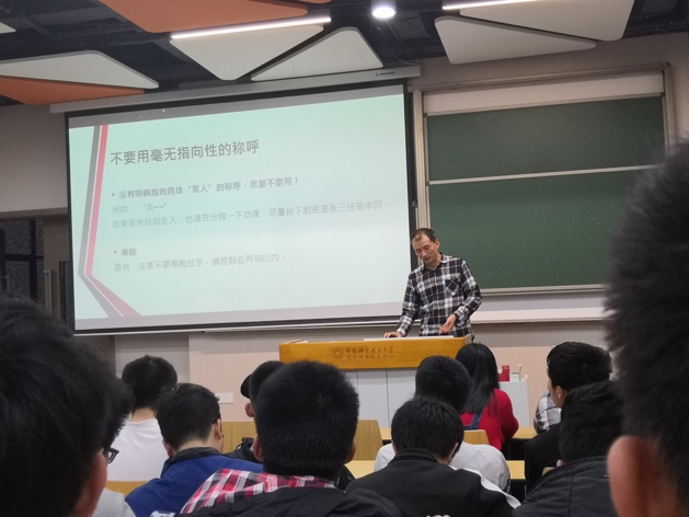师生之间的和睦关系,需要相互尊重、讲求礼仪来维持。细如一个开关敲门的动作,都能体现品质素养。不仅是日常碰面交谈时需要讲求礼仪;进入大学,手机和电子邮件的使用更加频繁。接打电话的语气、挂断电话的顺序、陌生人之间通话的称谓,这些都是我们在日常生活中常常忽视的细节;而邮件的主题、落款、称呼、内容、抄送密送等功能的使用场景和方法就更为不常使用的我们所不熟悉的了。而更加老生常谈的相约守时、诚实守信,却在快节奏的大学生活中备受冷落。班主任通过生动典型的例子,细心讲解其中要点。在班主任的点拨下,同学们豁然开朗、受益匪浅。