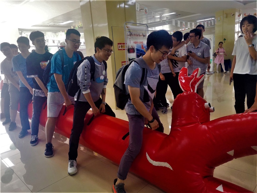 今天的压轴好戏——旱地龙舟终于来啦!“一二一二”整齐划一,声震满堂,这是又一项团队活动,我们喊出了气势,感受了合作的力量。同学们的夸张表情被做成了表情包,嬉笑之间留存的是难忘的记忆。