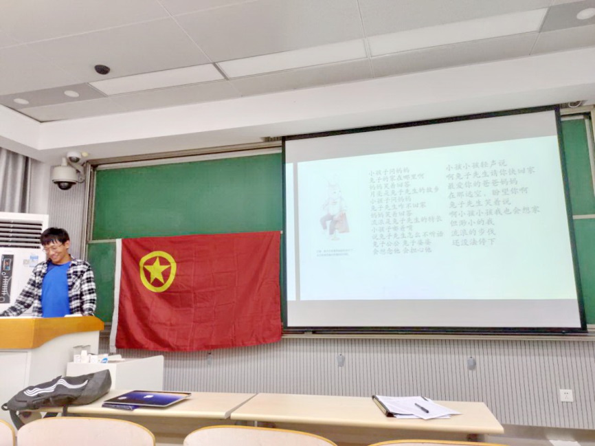 之后,由曲一畅同学主持进行了中秋晚会,现场气氛十分热烈。首先,他介绍了关于月饼和中秋的趣味历史,并且播放了幽默视频,在引起一阵阵笑声的同时,完成了对中秋和月饼起名和来源的知识介绍。作为传统节日的活动之一的飞花令怎么能少,以月起头,同学们回答此起彼伏,热情高涨,成功调动了现场的气氛,并且带领大家回忆起了优美的古典诗词,在诗情画意之中引领人们重新领略中秋之美。