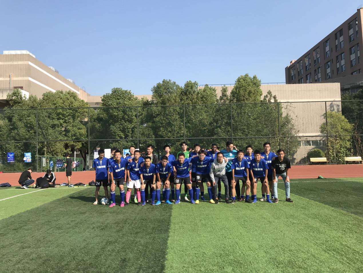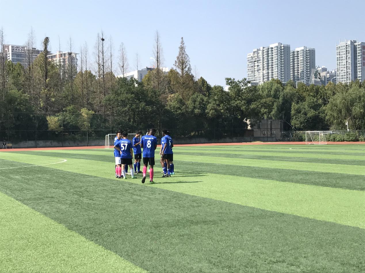 工院洞穿了我方的后防漏洞,工院队长的一记远射打得门将章东泉措手不及,我方失守,0:1落后。没过多久,对方前锋利用个人能力再下一城。开场不到20分钟,我方0:2落后,但队友们并没有垂头丧气,而是互相鼓励、加油打气,比赛很快进入了我们的节奏。功夫不负有心人,在上半场比赛进行到40分钟左右,中场salva的一记长传落在对方中后卫与门将中间,前锋朱思远拍马赶到,用一记极具想象力的蝎子摆尾将球打进。打开局面的我方开始了潮水般的反攻,可惜裁判早早吹响了中场哨声,我们带着1:2的比分来到了下半场。