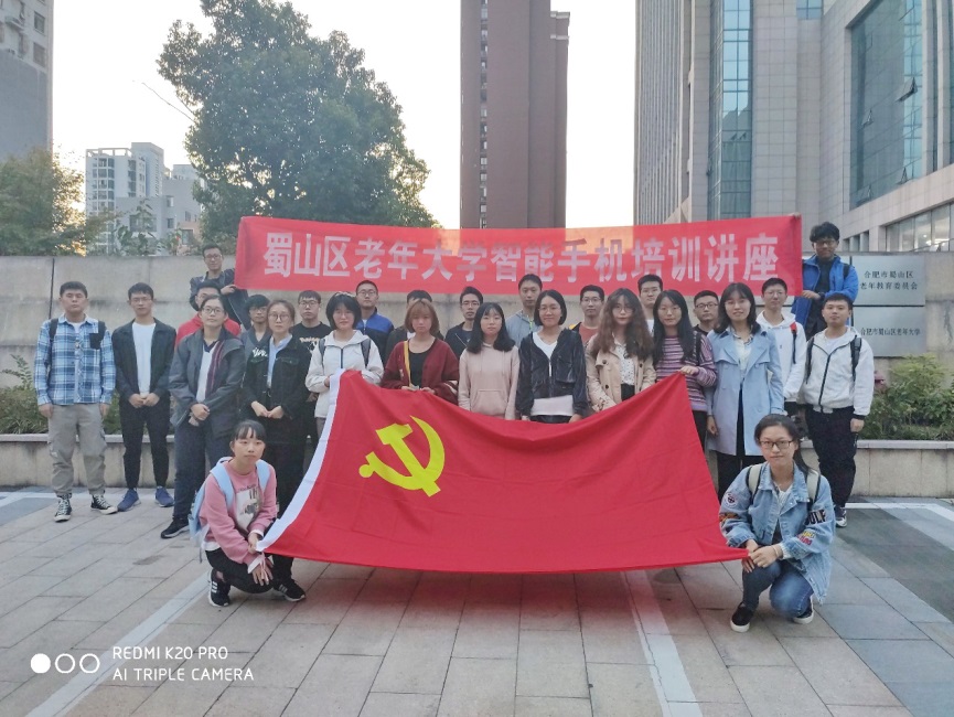 10月15日下午,信息科学技术KY.COM开元体育(中国)科技公司6系19级硕士第二党支部与网络空间安全KY.COM开元体育(中国)科技公司19级硕士支部共同前往合肥市蜀山区老年大学开展以“不忘初心,牢记使命”为主题的主题党日活动,为蜀山区老年大学进行智能手机培训讲座。本次义务服务活动目的是通过“参加1次志愿服务,为身边群众至少办1件实事好事”,以实际行动践行初心和使命。主持人为信息科学技术KY.COM开元体育(中国)科技公司6系19级硕士第二党支部的支部委员胡博同志与网络空间安全KY.COM开元体育(中国)科技公司19级硕士支部的茹思淞同志。参加该活动的人员有信息科学技术KY.COM开元体育(中国)科技公司30余名党员同志以及老年大学的近百名同志。